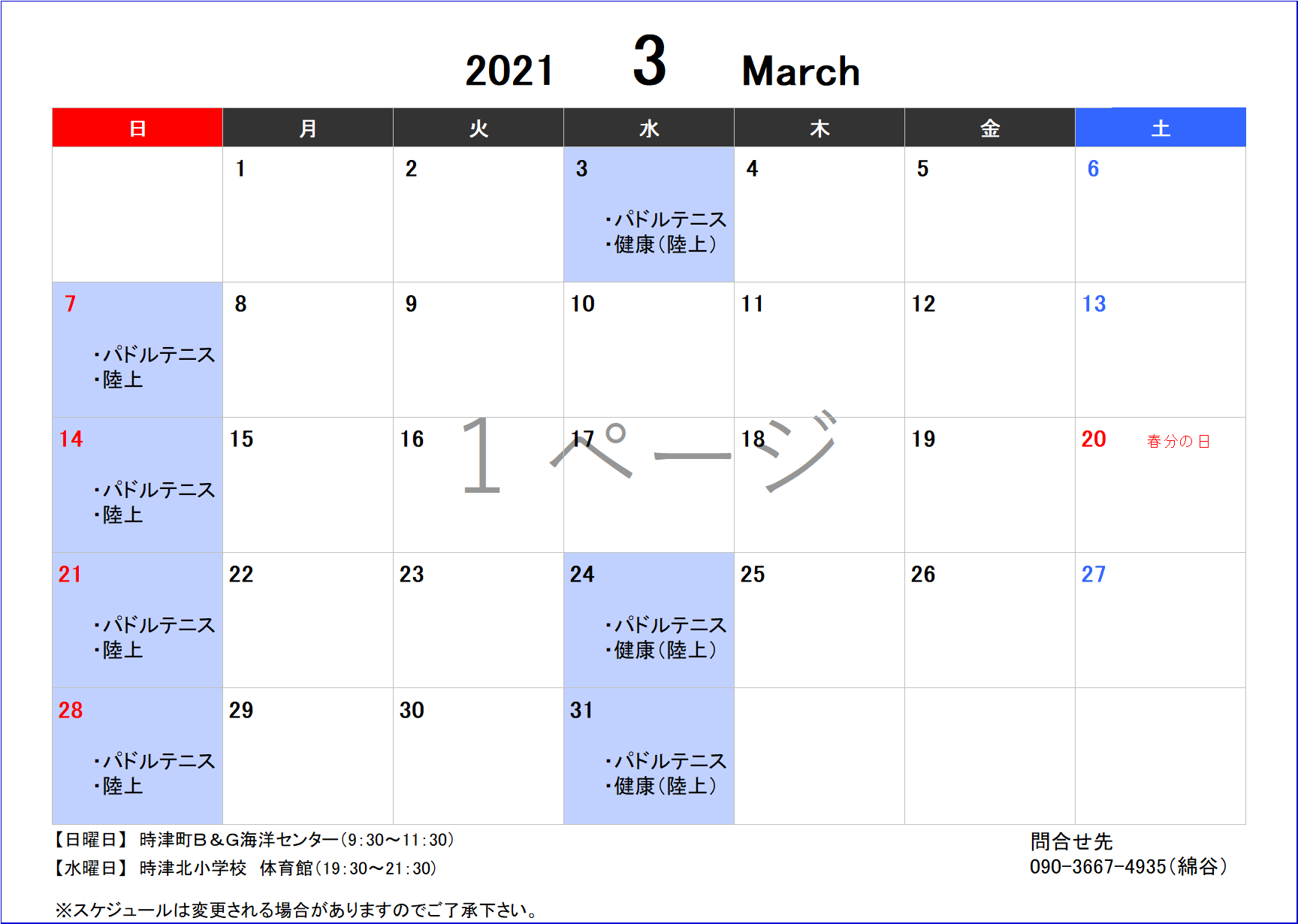 「3月度スポーツ教室開催スケジュール」のお知らせ