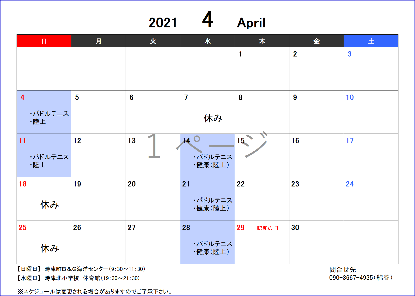 「4月度スポーツ教室開催スケジュール」のお知らせ