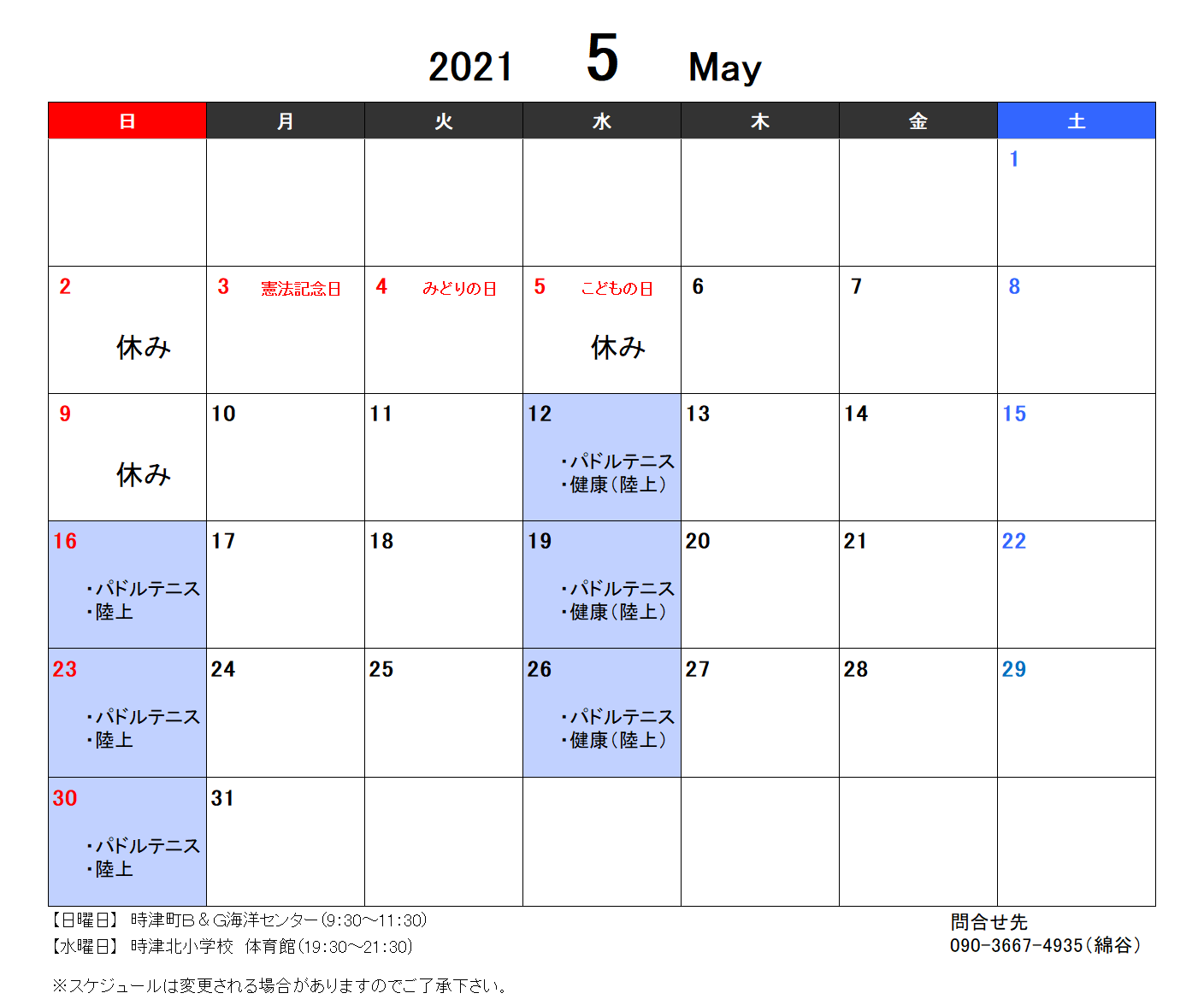「5月度スポーツ教室開催スケジュール」のお知らせ