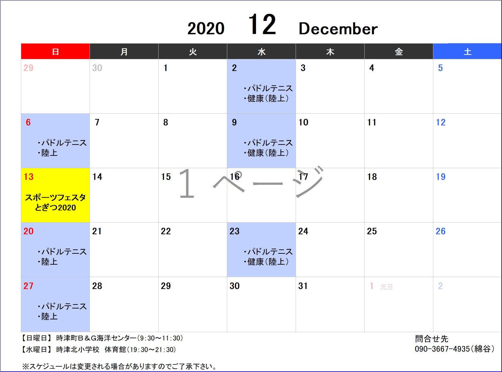 「12月度スポーツ教室開催スケジュール」のお知らせ