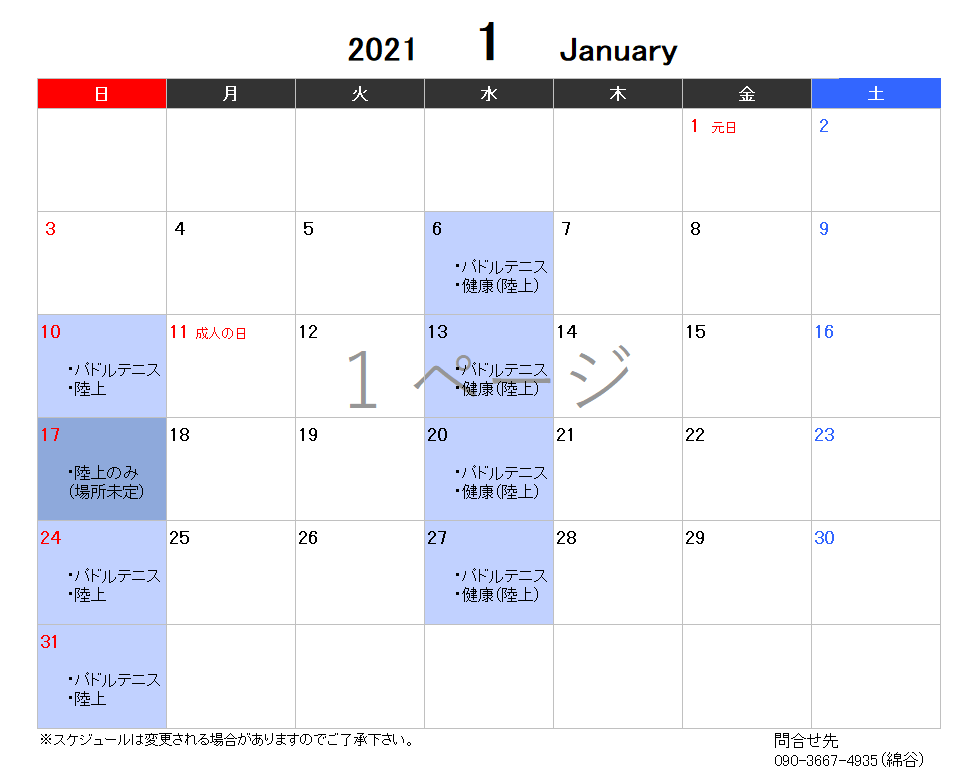 「2021年1月度スポーツ教室開催スケジュール」のお知らせ