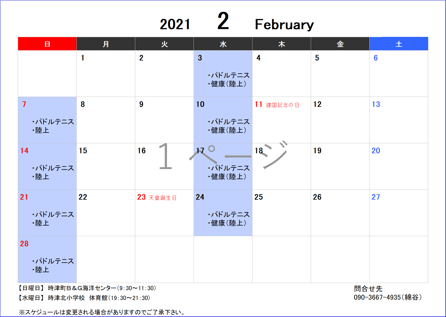 「2月度スポーツ教室開催スケジュール」のお知らせ